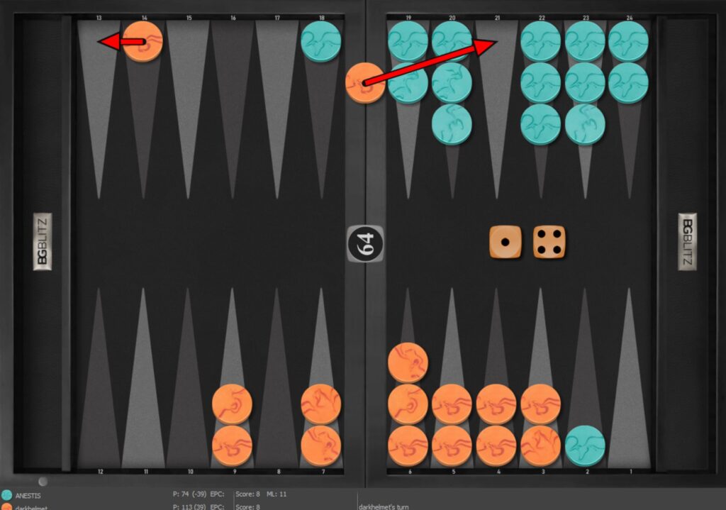 When playing this move, I probably spent something like 300 milliseconds on it. Get checker from the bar, do something with the remaining 1 that doesn’t affect the game too much. Maybe move the last checker. Always good.